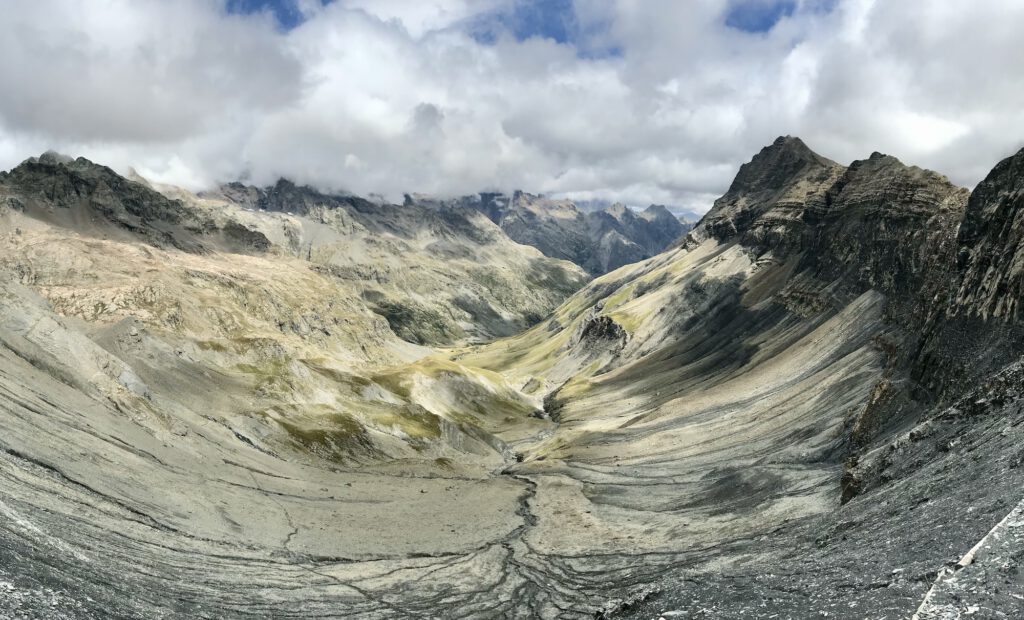 Aujourd’hui : double effet WAAAH ! ! ! D’une part, parce que c’est l’étape la plus difficile de notre Trek – et c’est pour ça que je la réserve pour la fin lorsque les organismes sont rodés – et d’autre part parce que l’on ne trouve un tel spectacle géologique nulle part ailleurs. Les plis synclinaux et anticlinaux de Flysch Marno-Gréseux nous attendent au point culminant de notre journée (col de l’Aup Martin, 2761m), et ça … c’est pas rien !