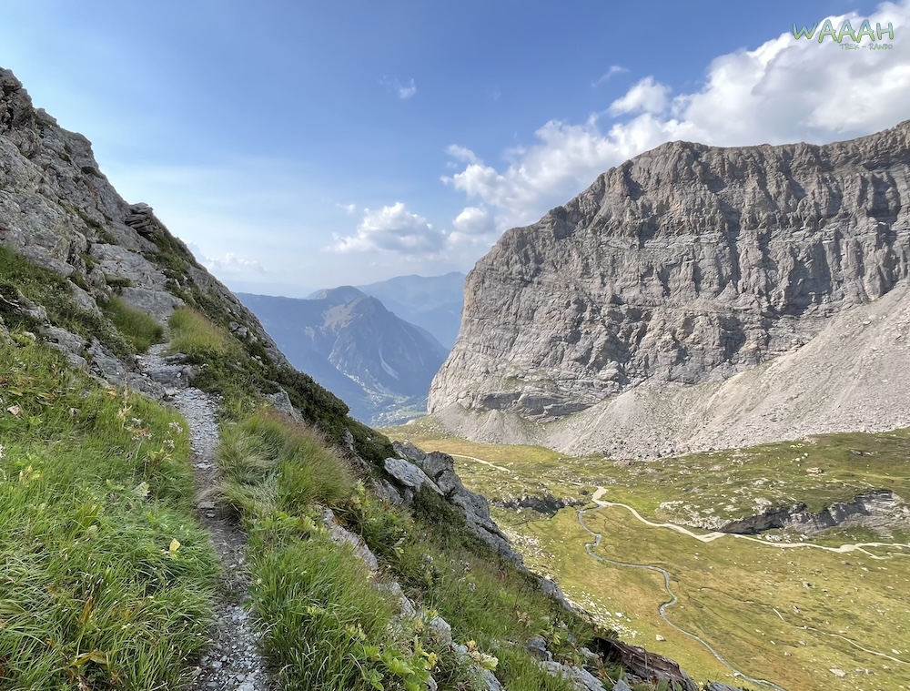 Nous partons du Parking des deux lacs pour une belle étape en balcons, avec vue sur la vallée de la Maurienne, et au loin sur les massifs du Thabor, des Cerces et des Ecrins. Les rapaces commencent à se montrer et à jouer avec les vents ascendants, tournoyants au dessus de quelques Edelweiss dont le respect doit être total. Nous arrivons très tôt dans la zone coeur du Parc National de la Vanoise, et à mi-chemin nous croiserons quelques torrents de montagne, très frais et contrastants avec l’aspect « sec » de la première partie. Cette étape est très roulante, sans difficulté particulière.