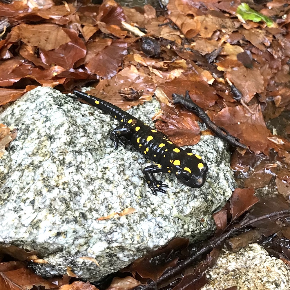 La corse abrite une espèce endémique (parmi d’autres) appelée SALAMANDRA CORSICA, que nous pourrions rencontrer entre USciolu et le Mont Incudine, si la météo le permet ! Attention ou vous mettez les pieds : cette espèce a été classée comme Quasi menacée.
